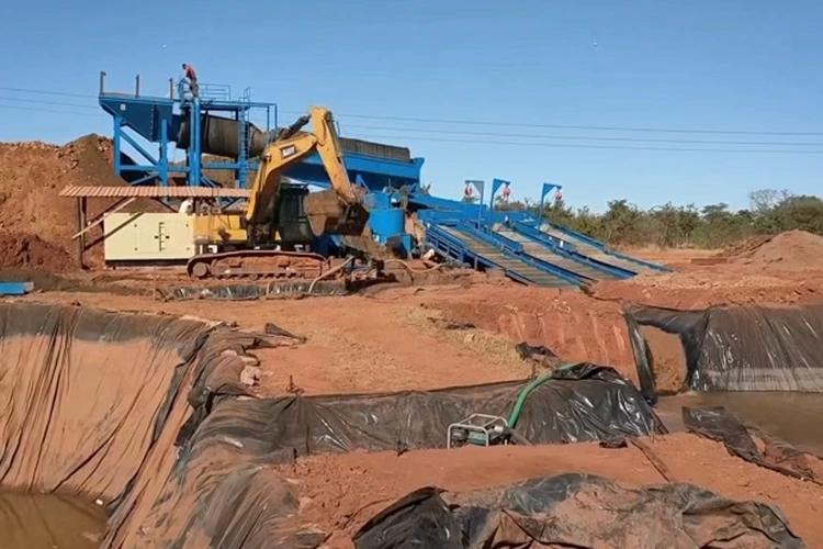 Impianti i lëvizshëm i nxjerrjes së arit: Është pajisja kryesore për nxjerrjen e arit me bazë në tokë, me zhvendosje fleksibël. Ai integron funksionet e procesit të plotë të ushqimit, skanimit dhe ndarjes së arit. Pasi gurët të hiqen nga ekrani i prerjes, llumi i mineralit më pas ndahet me pajisje të tilla si kutitë e grilave dhe koncentratorët centrifugale.